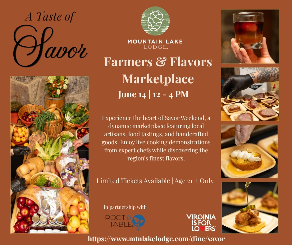 Mountain Lake Lodge presents A Taste of Savor: Farmers & Flavor Marketplace on Saturday, June 14, 2025 during their Savor: A Weekend Gathering Celebrating the Best in Southwest Virginia.