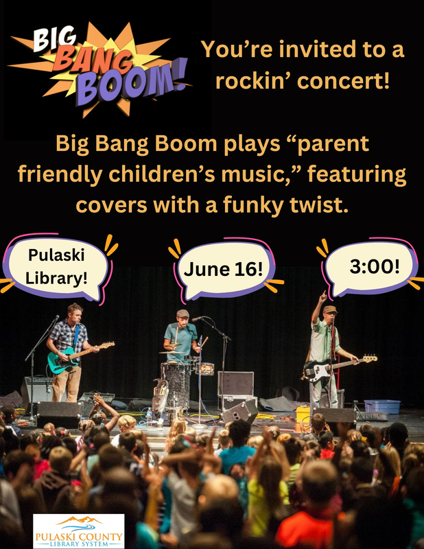 The Pulaski County Library presents Big Bang Boom in concert on Monday, June 16, 2025.