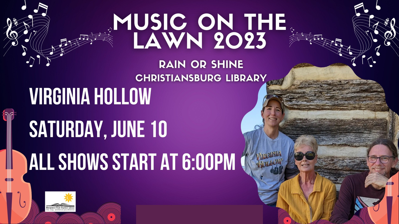 Christiansburg Library continues their 2023 Music on the Lawn concert series with Virginia Hollow on Saturday, June 10, 2023.