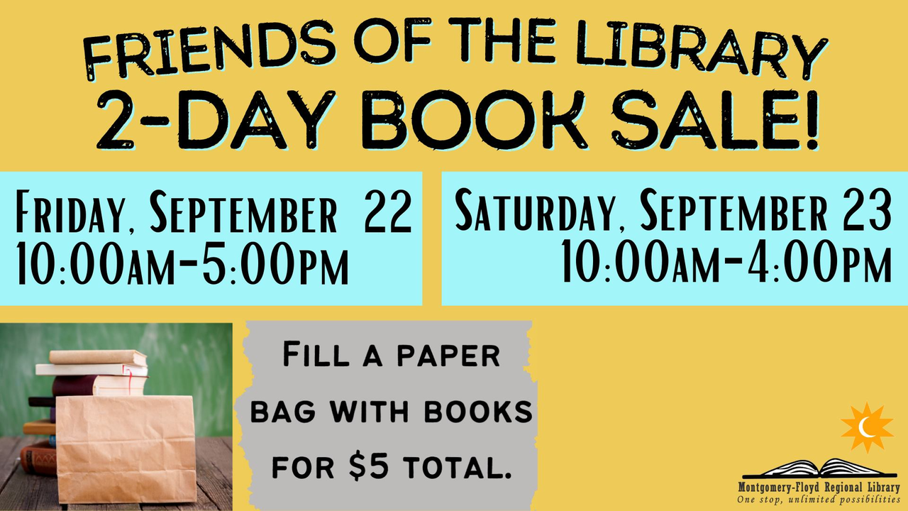 Meadowbrook Public Library presents their Friends of the Library Two-Day Used Book Sale on Friday, September 22, 2023 and Saturday, September 23, 2023.