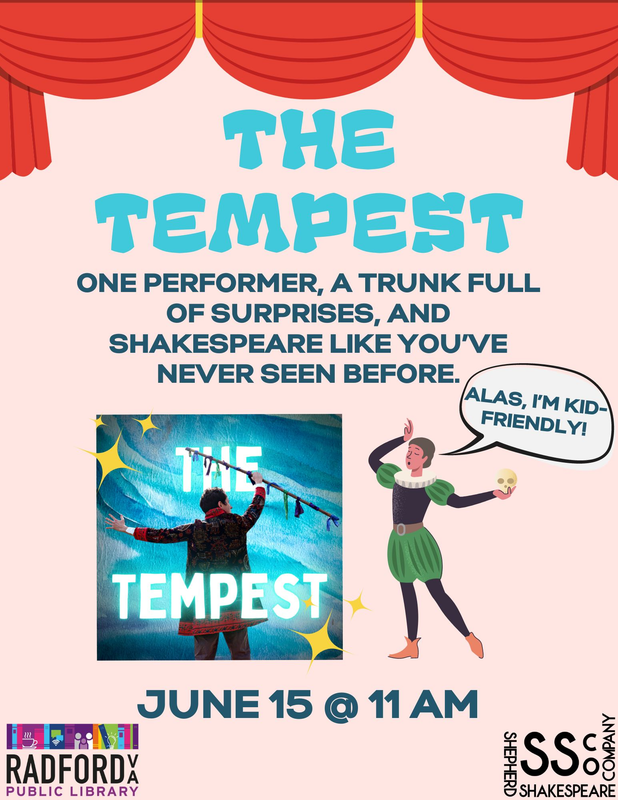 Radford Public Library presents The Tempest: A Kid-Friendly Shakespeare Show on Saturday, June 15, 2024.