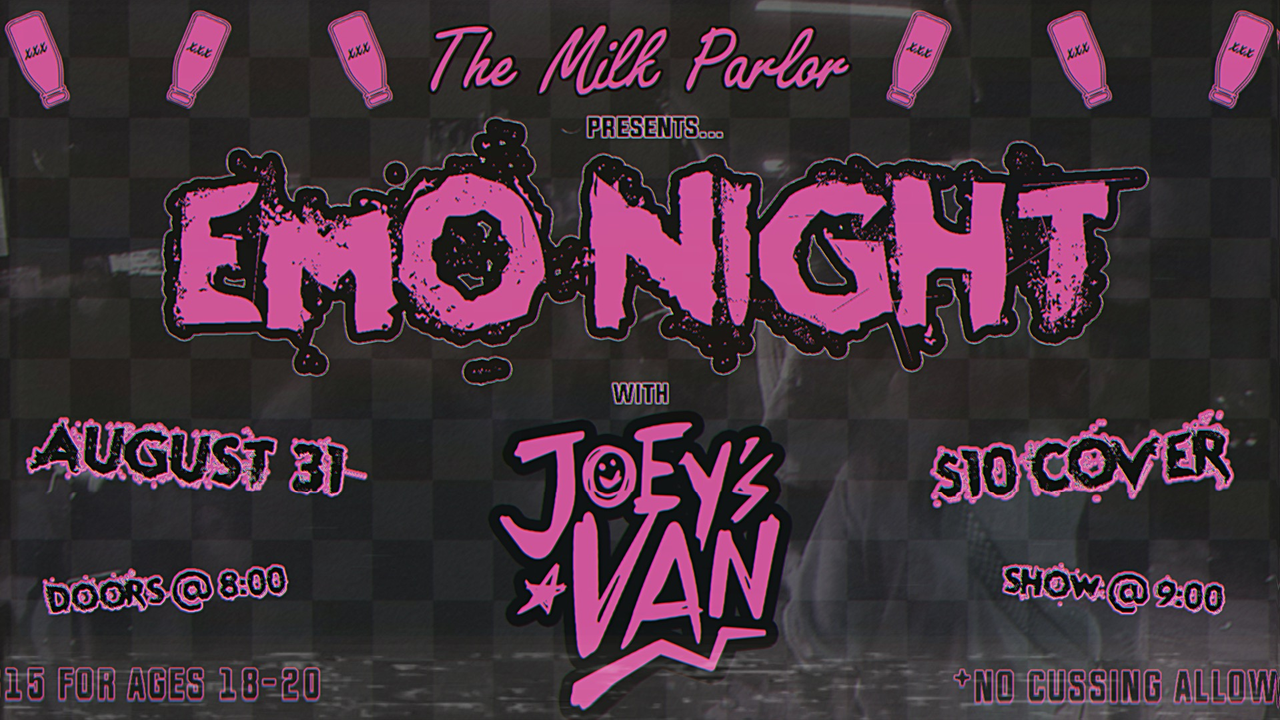 The Milk Parlor presents Emo Night with Joey's Van in concert on Saturday, August 31, 2024.