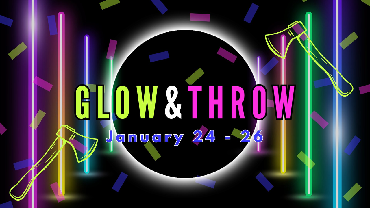 Glow and Throw Weekend is lit! Join us after dark and experience axe throwing like never before with glowing axes, targets, and vibes! Grab your crew and light up the night with epic throws, neon fun, and unforgettable moments!