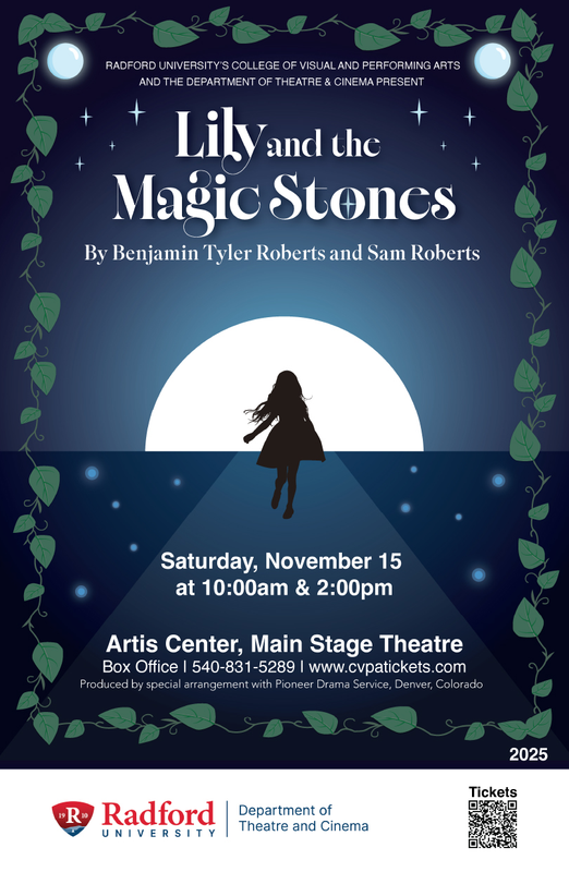 The Radford University College of Visual & Performing Arts and the Department of Theatre and Cinema presents the family friendly play "Lilly and the Magic Stones" on Saturday, November 15, 2025 with two performances at 10:00 AM and 2:00 PM at the Artis Center for Adaptive Innovation and Creativity's Main Stage Theatre on the campus of Radford University.