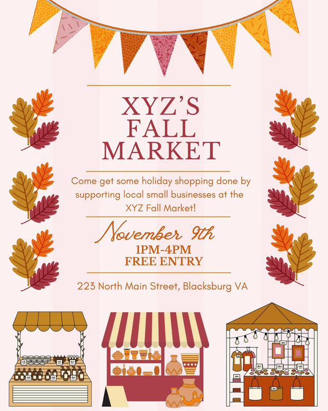 To view the event flyer, visit: https://i.postimg.cc/ncZCHNyr/XYZGallery-Fall-Market-11-9-25.jpg.
