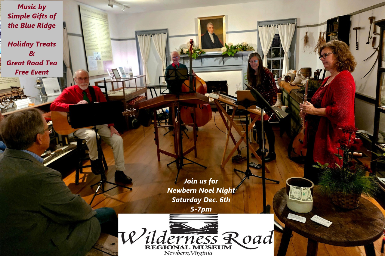 Enjoy the freshly decorated museum by candlelight. Simple Gifts of the Blue Ridge will present music from 5:00-7:00 PM. Taste historically inspired snacks along with Great Road Tea and shop for gifts in the 1818 Barn with local crafters. And, help us dedicate the newly conserved mid 19th Century Carriage House and listen to a special Christmas Story from Newbern involving the stage route along the Great Road.