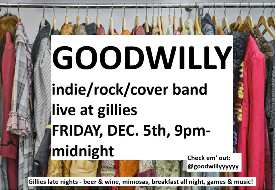 Gillie's presents Goodwilly in concert as part of Gillie's Late Night on Friday, December 5, 2025.