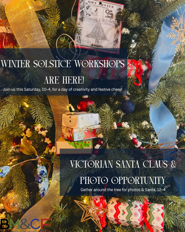 Kick off the holiday season with a Victorian Christmas celebration at one of Blacksburg's oldest houses. Sip wassail punch while creating one of a kind handmade gifts during our Winter Solstice Workshops, pass you list to Santa and strike a pose for a winter holiday worthy photo!