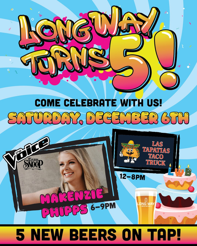Long Way Brewing presents their 5th Birthday Celebration with Makenzie Phipps in concert on Saturday, December 6, 2025.