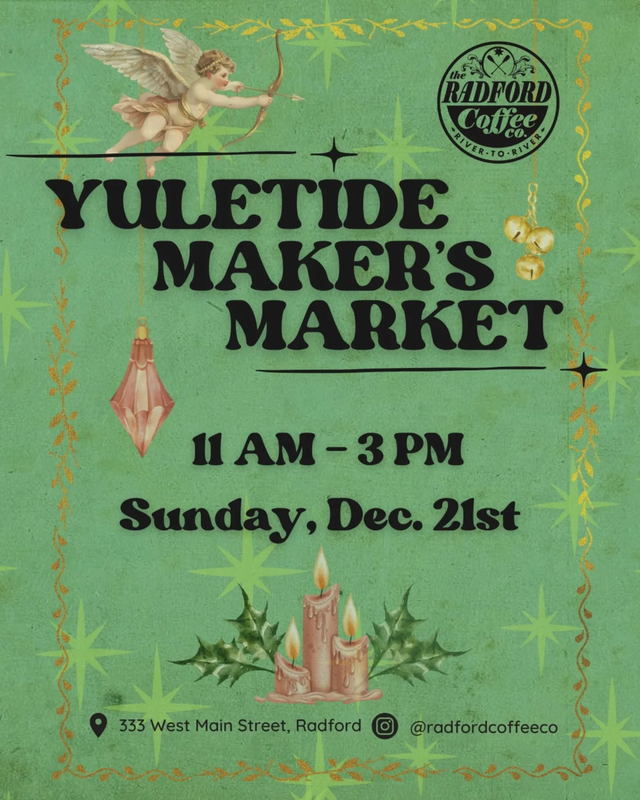 Radford Coffee Company presents the Annual Yuletide Maker's Market on Sunday, December 21, 2025.