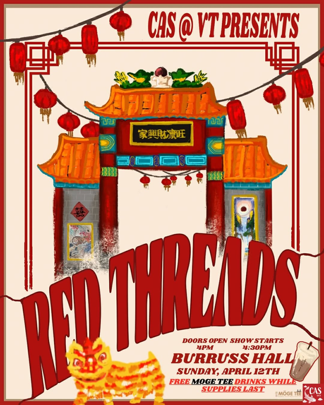 The Chinese American Society at Virginia Tech presents their annual culture show titled "Red Threads" on Sunday, April 12, 2026 inside the Burruss Auditorium on the campus of Virginia Tech.