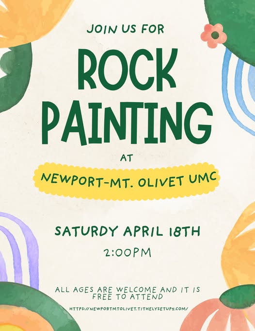 Newport-Mt. Olivet United Methodist Church presents a Rock Painting Workshop on Saturday, April 18, 2026 in the Fellowship Hall.