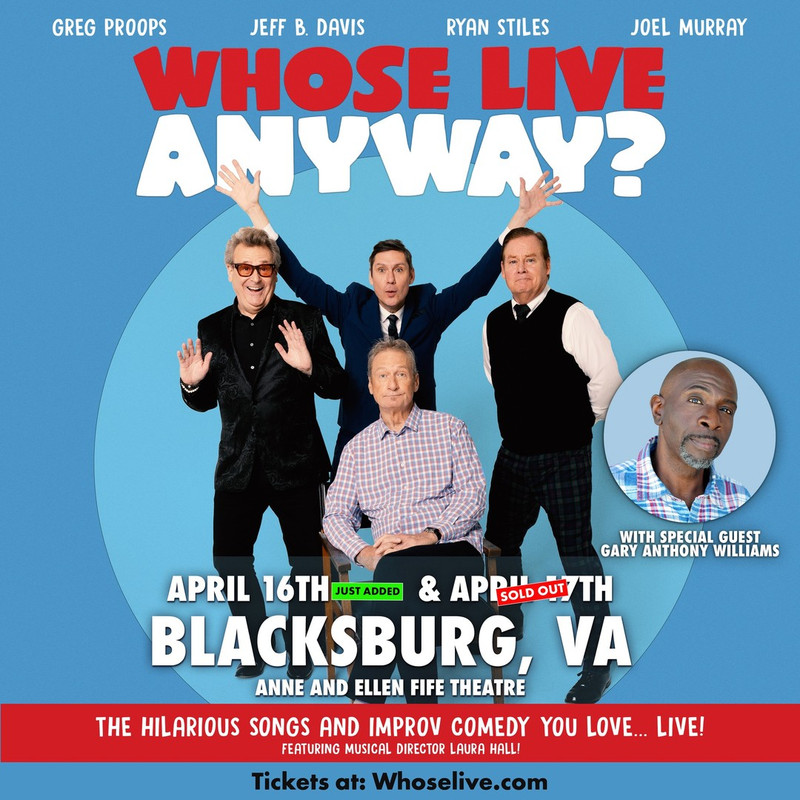 The Improv and Comedy Performance "Whose Live Anyway" will be held on Thursday, April 16, 2026 and Friday, April 17, 2026 at the Center for the Arts at Virginia Tech.
