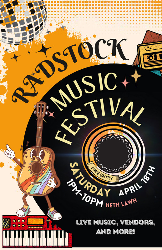 Radford University’s Music Business Student Association presents the 2026 Radstock Music Festival on Saturday, April 18, 2026 will be held on the Heth Lawn on the campus of Radford University.