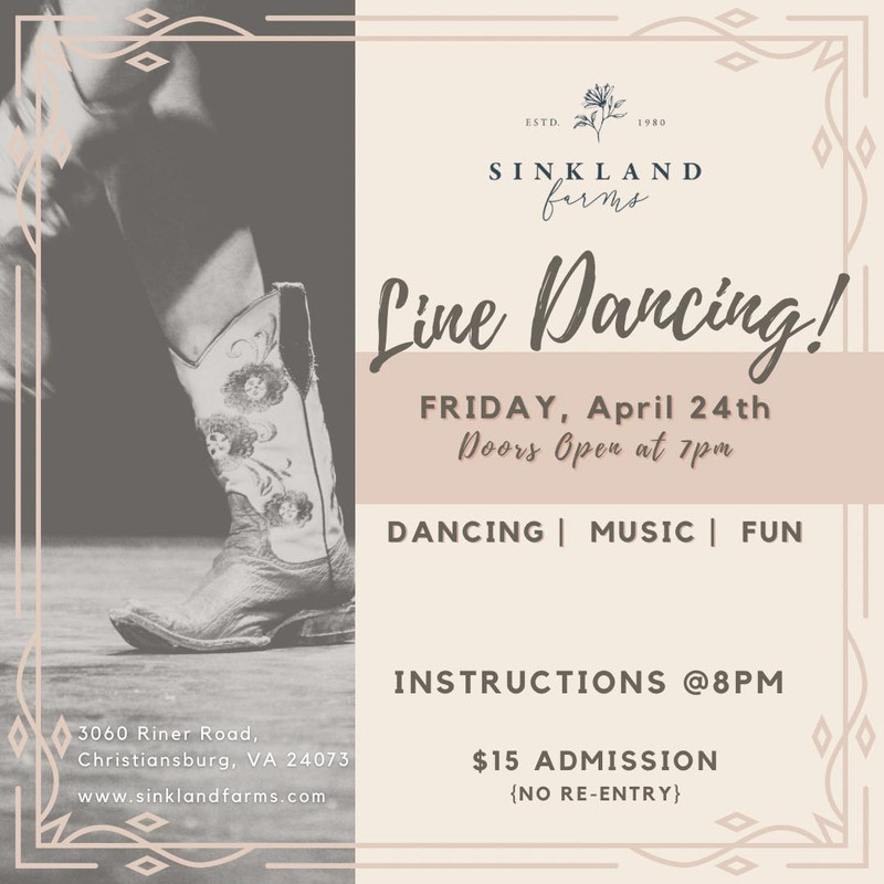 Sinkland Farms presents Line Dancing on Friday, April 24, 2026.
