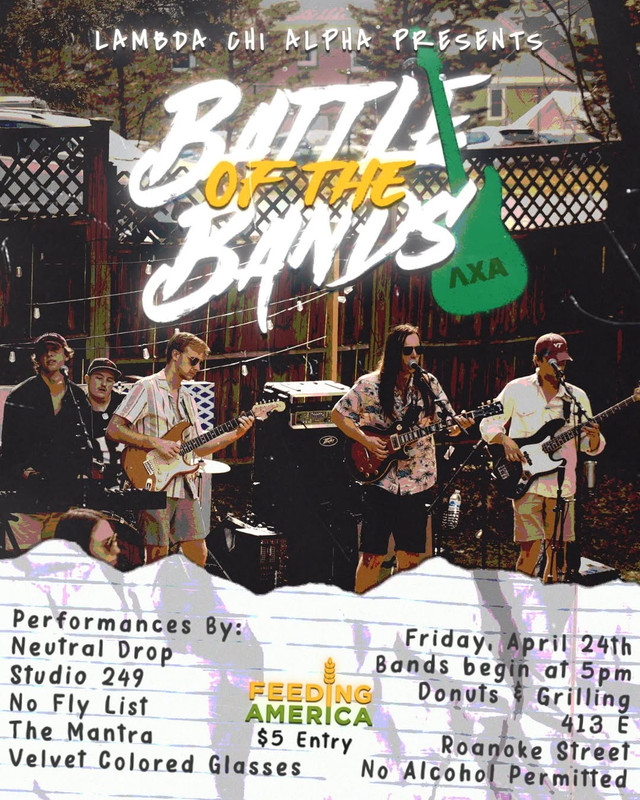 Lambda Chi Alpha at Virginia Tech presents the 2nd Annual Battle of the Bands for Feeding America on Friday, April 24, 2026.