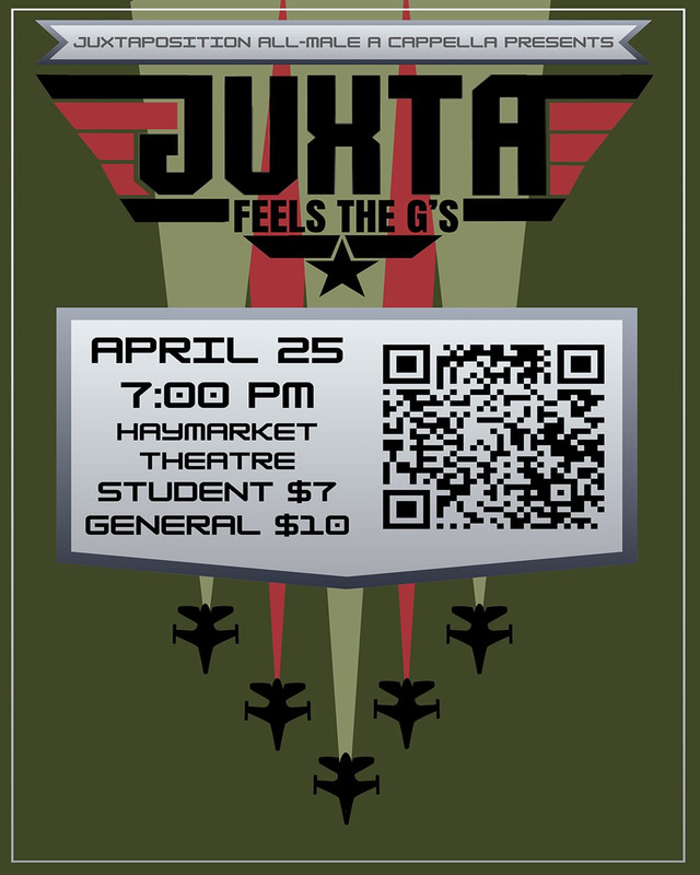 Juxtaposition All-Male A-Cappella presents their 2026 Spring Concert titled "Juxta Feels The G's" on Saturday, April 25, 2026 inside the Haymarket Theater located within the Squires Student Center on the campus of Virginia Tech.