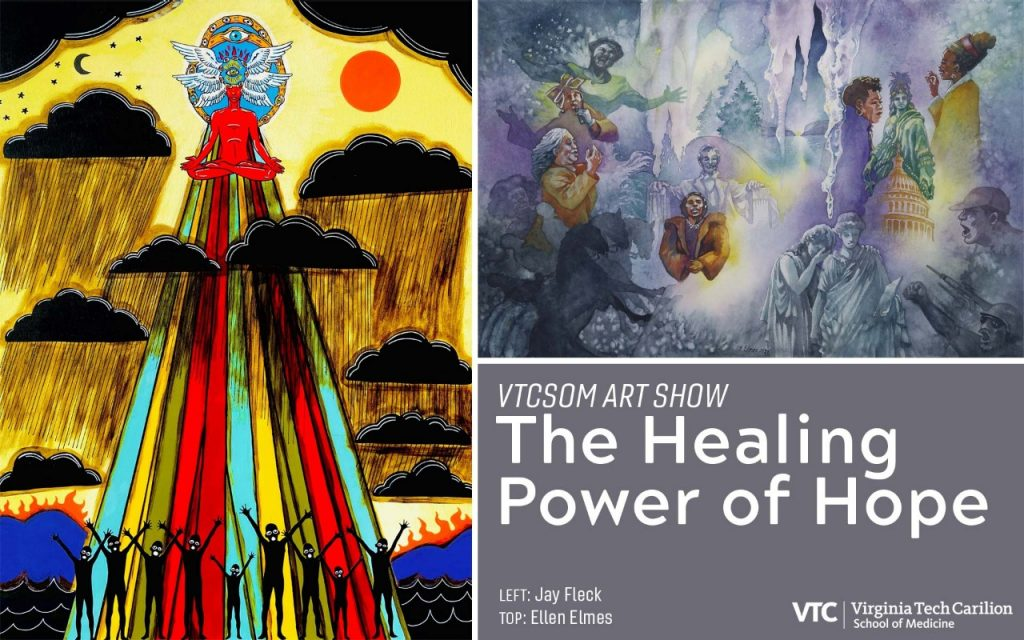 The Virginia Tech Carilion School of Medicine is pleased to announce the opening reception for its spring 2023 exhibit: "The Healing Power of Hope" in which artwork illustrates the theme that hope is an integral part of any healing process. Works will feature local artists Kristy Ottinger, Jay Flack, and William Fields, among others as well as a special exhibit by CHIP.