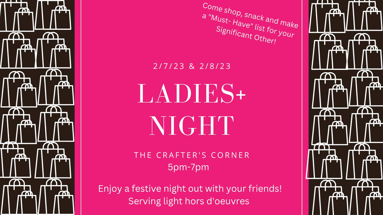 The Crafter's Corner presents Ladies Night on Tuesday, February 7, 2023 and Wednesday, February 8, 2023.