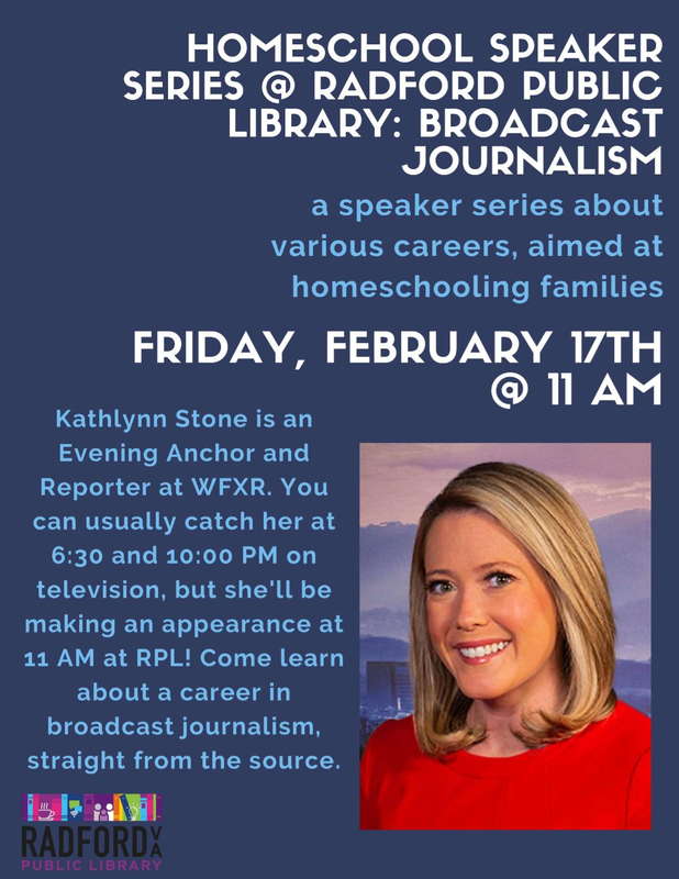 The Radford Public Library continues their Homeschool Speaker Series focusing on Broadcast Journalism on Friday, February 17, 2023.