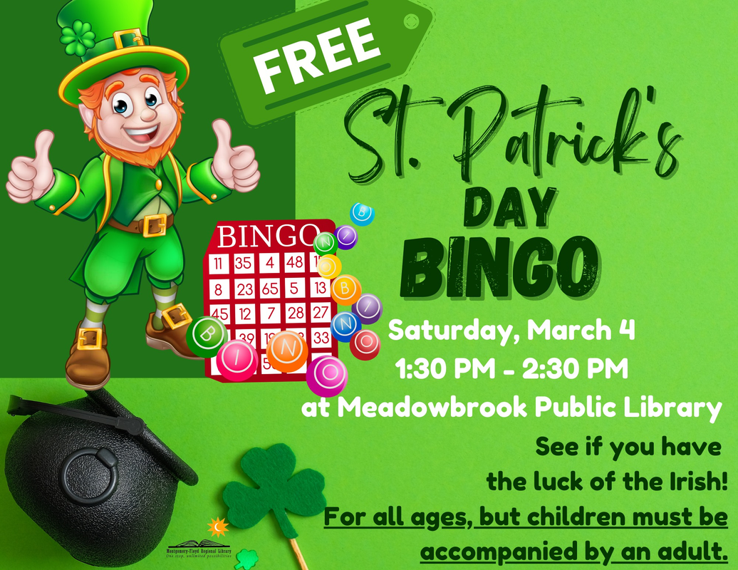 Meadowbrook Public Library presents St. Patrick's Day Bingo on Saturday, March 4, 2023.