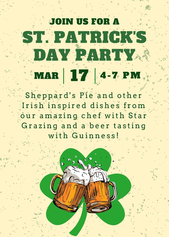 Celebrate St. Patrick's Day with us! Our amazing Chef Amber Lynn from Star Grazing is going to be in store making Shepherd's Pie and other Irish inspired foods for purchase. We will also have a rep from Guinness doing our free beer tasting that day!