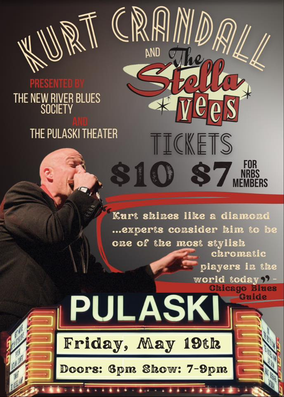 The New River Blues Society (NRBS) presents Kurt Crandall & the Stella Vees in concert on Friday, May 19, 2023 at the Pulaski Theatre.