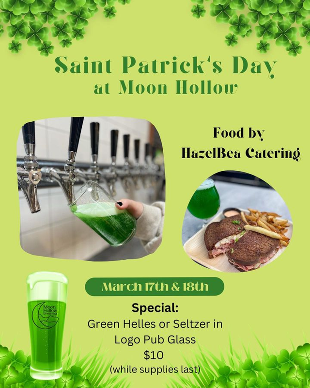 Moon Hollow Brewing presents their St. Patrick's Day Celebration on Friday, March 17, 2023 and Saturday, March 18, 2023.