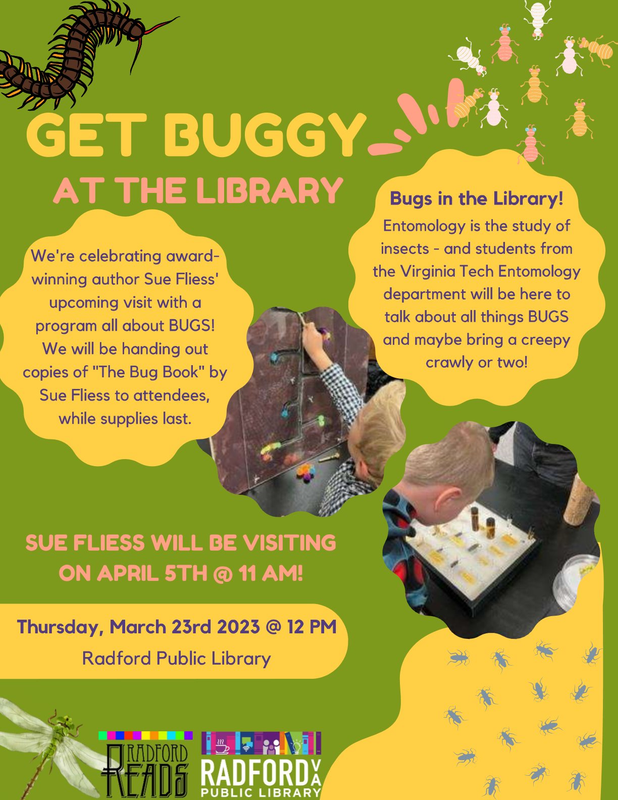 Radford Public Library presents the program "Get Buggy at the Library" on Thursday, March 23, 2023.