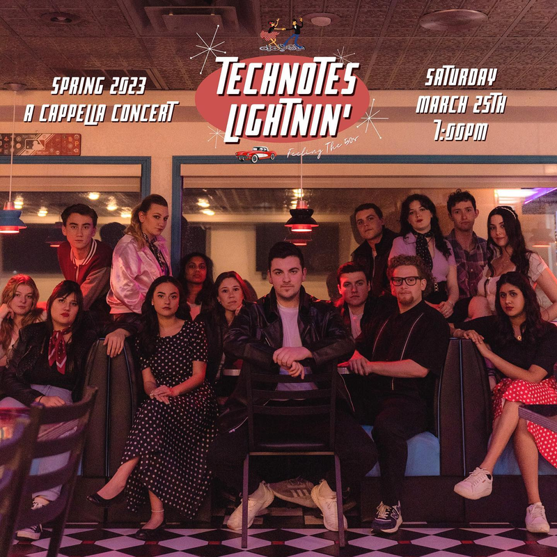 TechNotes presents their Spring 2023 Concert titled "TechNotes Lightnin’: Feeling the 50s" on Saturday, March 25, 2023 in the Haymarket Theatre located within the Squires Student Center on the campus of Virginia Tech.