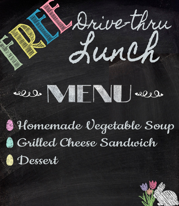 A homemade lunch consisting of Vegetable Soup, Grilled Cheese Sandwich and Dessert will be prepared and packaged for carry-out and delivered to you in your vehicle while supplies last.