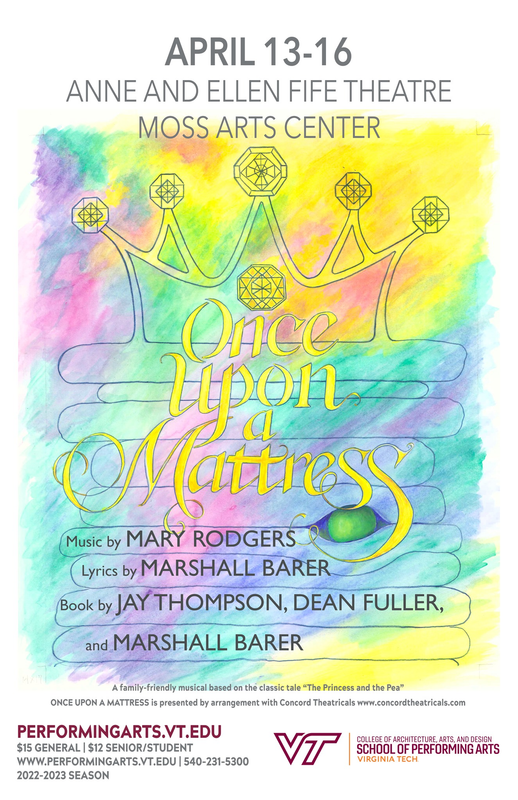 The Virginia Tech School of Performing Arts presents the play "Once Upon A Mattress" with four performances starting on Thursday, April 13, 2023 through Sunday, April 16, 2023 at The Moss Arts Center.