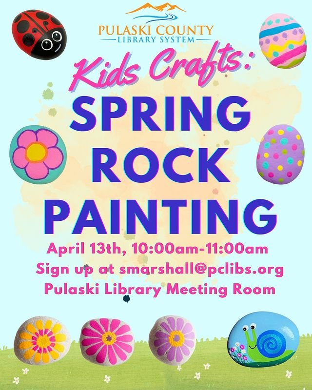 Pulaski County Library presents the Kids Crafts "Spring Rock Painting" on Thursday, April 13, 2023 in the Meeting Room.