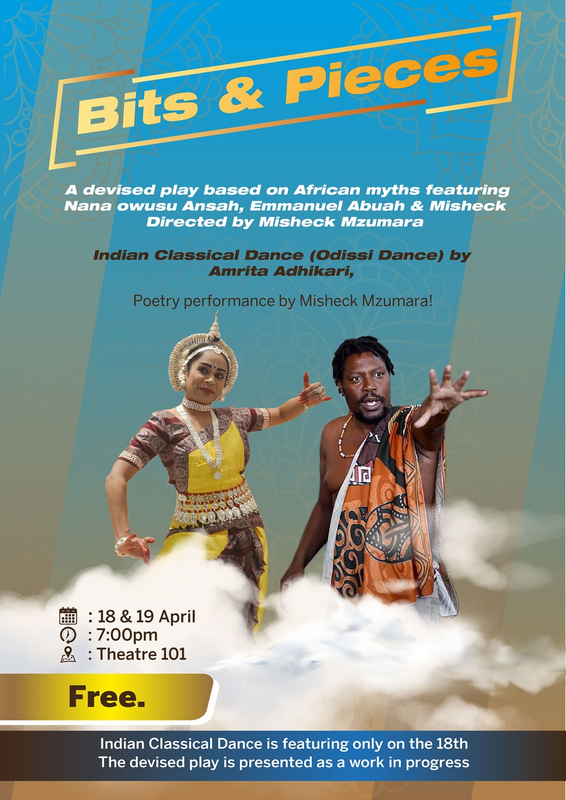"Bits & Pieces" is a devised play presented as a work in progress based on African myths featuring Nana Owusu Ansha, Emmanuel Abuah, and Misheck Mzumara. And, enjoy a poetry performance by Misheck Mzumara.