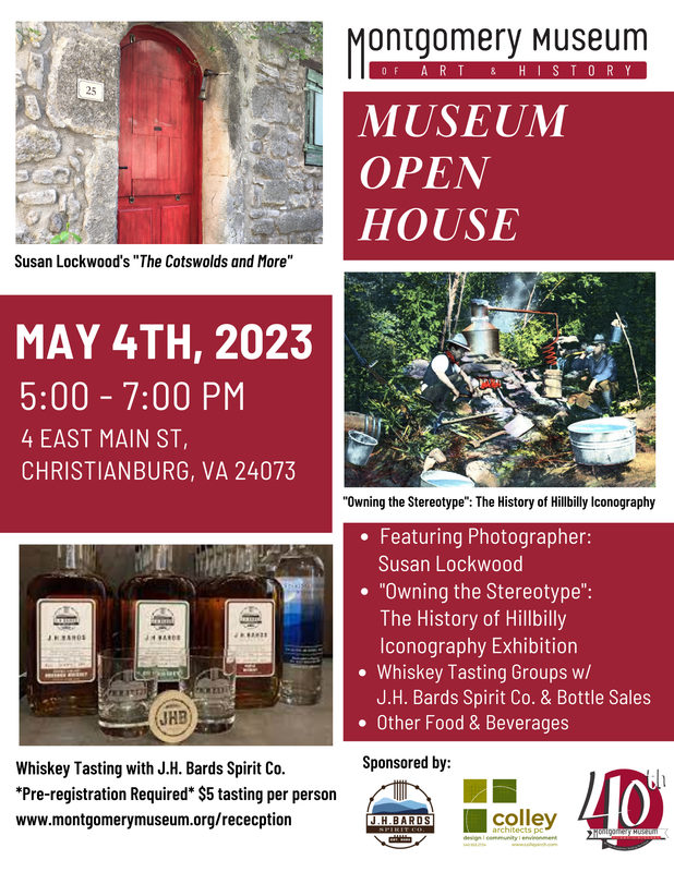 Join Montgomery Museum for an Open House and opening reception for Photographer Susan Lockwood's new exhibit "The Cotswolds and More". This event also includes the opening of our history exhibition, "Owning the Stereotype: The History of Hillbilly Iconography Exhibition." The exhibit will explore how stereotypes featuring the poor, backward “hillbilly” found their way onto myriad objects. This exhibition features the private collection of Montgomery Museum Board President Dr. Jean Haskell, retired professor of Appalachian Studies at Virginia Tech and East Tennessee State University and co-editor of the Encyclopedia of Appalachia.