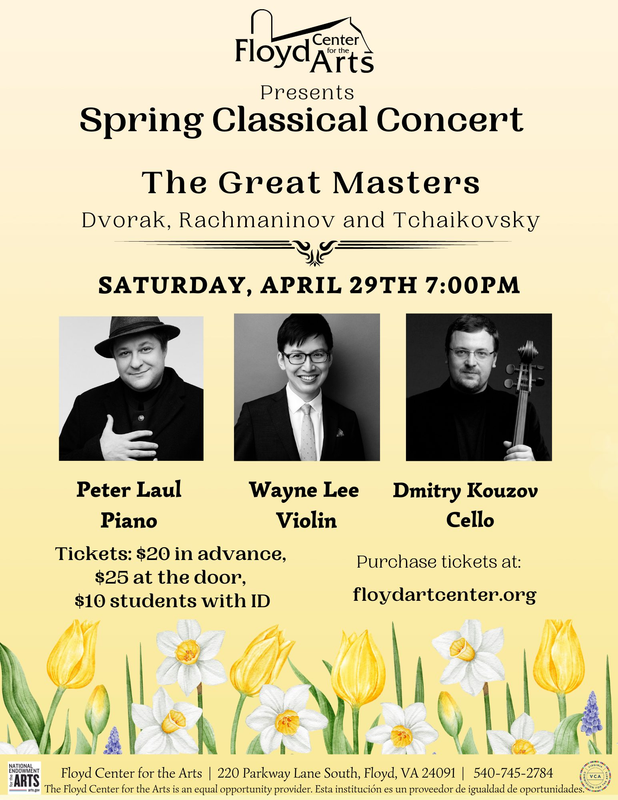 The Floyd Center for the Arts presents a Spring Classical Concert titled "The Great Masters" on Saturday, April 29, 2023.