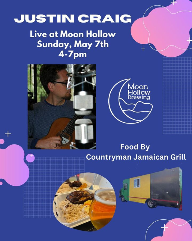 Moon Hollow Brewing presents Justin Craig in concert on Sunday, May 7, 2023.