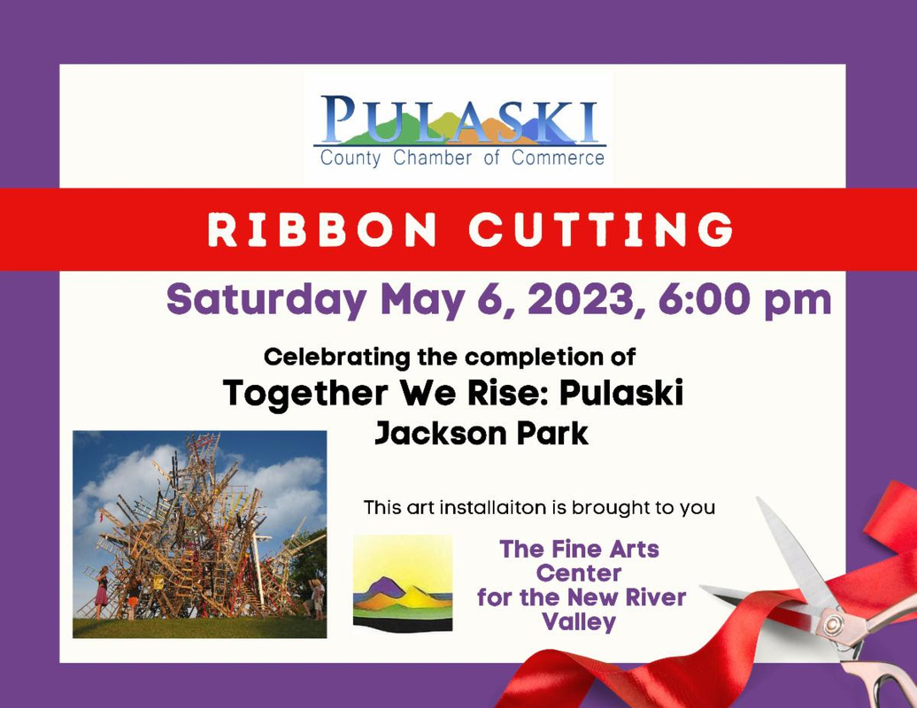 The Fine Arts Center for the New River Valley and the Pulaski Chamber of Commerce presents a Ribbon Cutting Ceremony for the Sculpture "Together We Rise: Pulaski" on Saturday, May 6, 2023 at Jackson Park in Pulaski, VA.