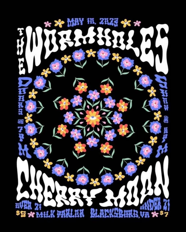 https://www.instagram.com/wearethewormholes/Cherry Moon is a Blacksburg-based, psych-rock band inspired by 70s psychedelia, 80s synths, and 90s grunge. And, they love a space theme.