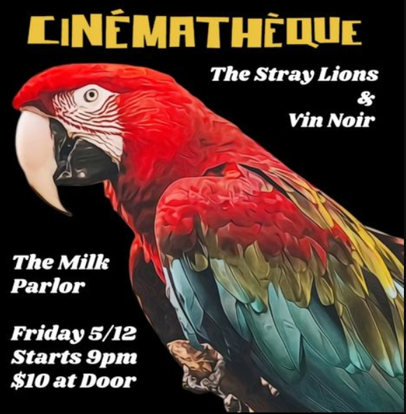The Milk Parlor presents a Three Band Concert with Cinematheque, Copy Cat Syndrome and Vin Noir on Friday, May 12, 2023.