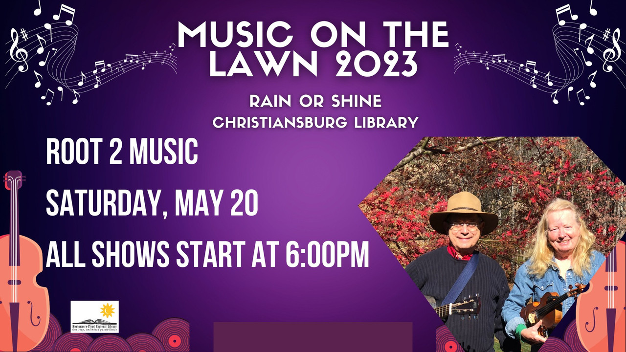 Christiansburg Library presents the 2023 Music on the Lawn concert series with Root 2 Music on Saturday, May 20, 2023.