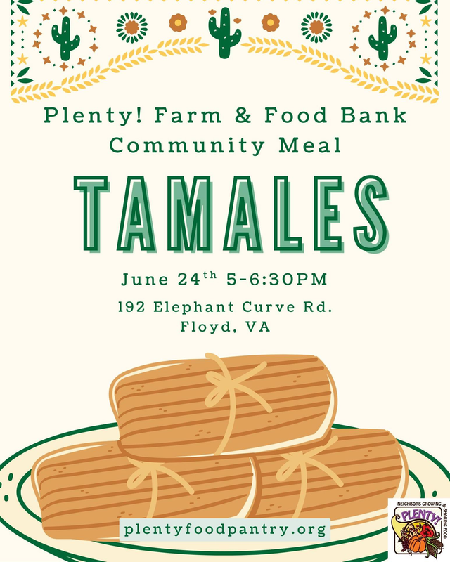 Plenty! Farm presents their June Community Meal featuring Tamales on Tuesday, June 24, 2025.