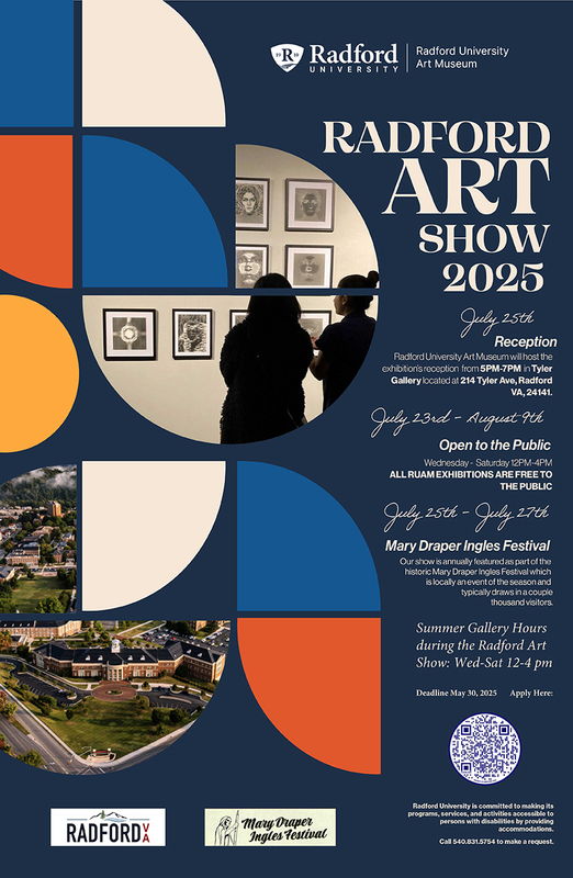 The Radford University College of Visual & Performing Arts presents the Radford Art Show 2025 Reception on Friday, July 25, 2025 at the Radford University Art Museum on Tyler.