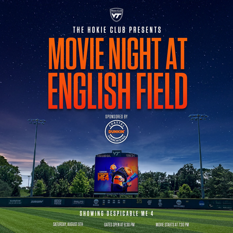 The Hokie Club presents a Movie Night with "Despicable Me 4" on Saturday, August 9, 2025 at English Field on the campus of Virginia Tech.