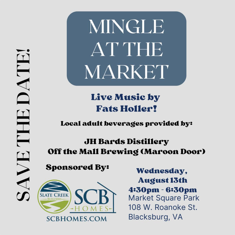 The Blacksburg Farmers Market presents their August and final 2025 Mingle at the Market on Wednesday, August 13, 2025 at Market Square Park.