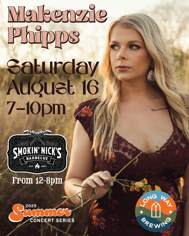 Long Way Brewing presents Makenzie Phipps in concert on Saturday, August 16, 2025.