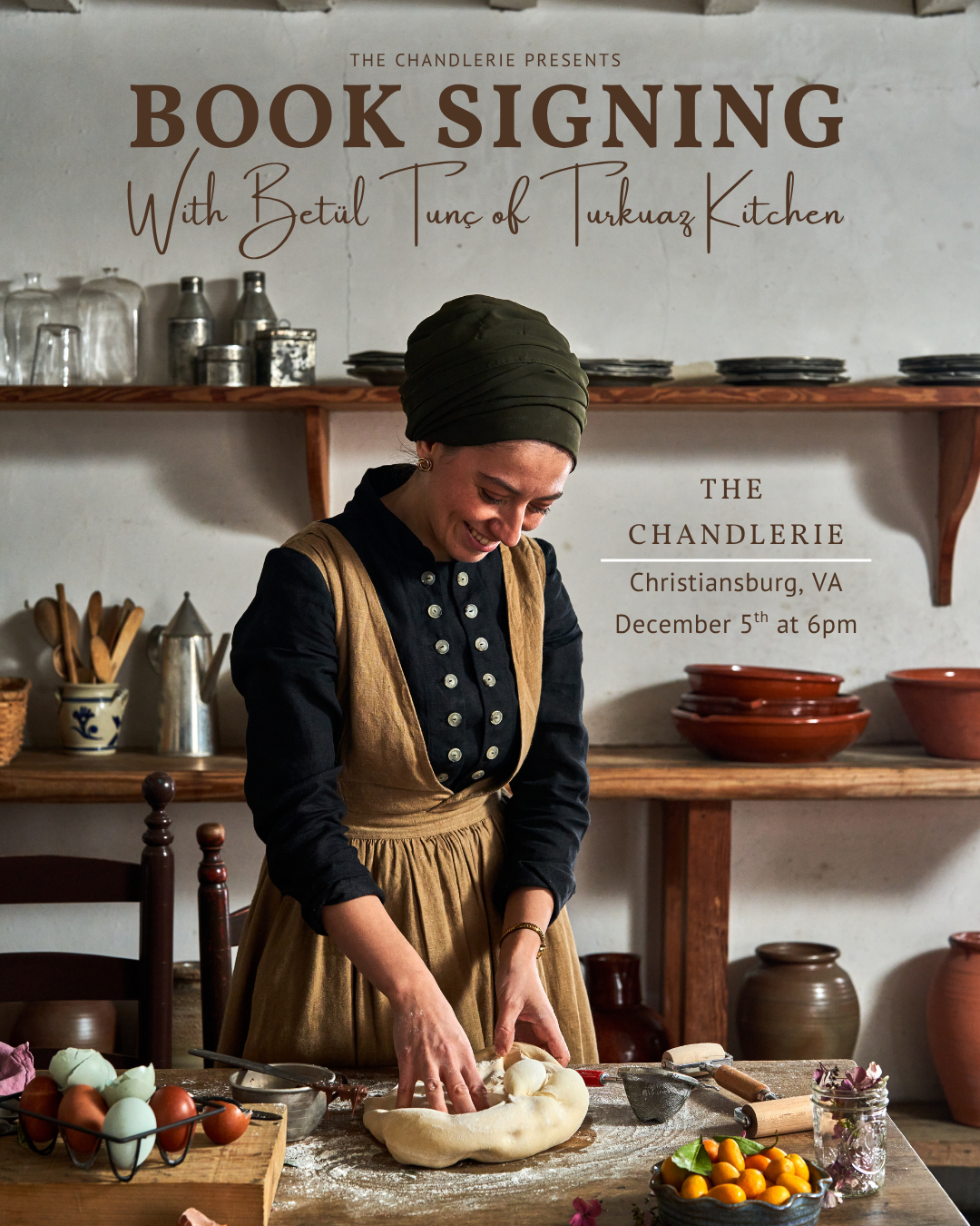The Chandlerie presents a Book Signing with Betül Tunc of Turkuaz Kitchen on Friday, December 5, 2025.