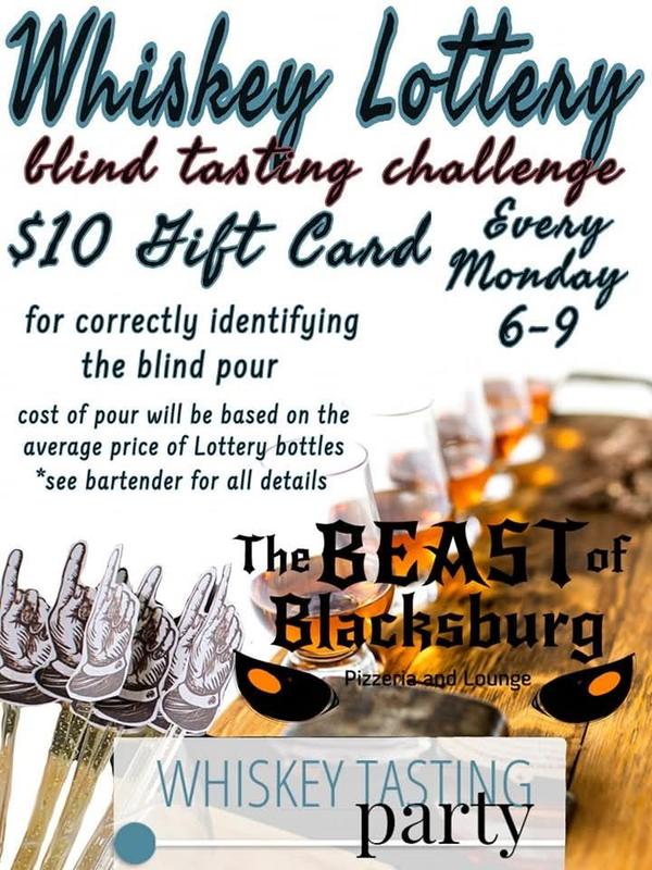 The Beast of Blacksburg Pizzeria & Bar presents a Monday Night Blind Whiskey Tasting on Monday, December 15, 2025 at the Bourbon Bar.