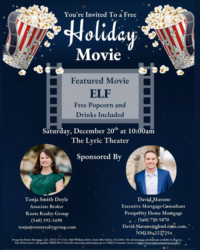 Roots Realty Group and Prosperity Home Mortgage presents a Free Holiday Classic Screening of "Elf" on Saturday, December 20, 2025 at The Lyric Theatre in Blacksburg, VA.