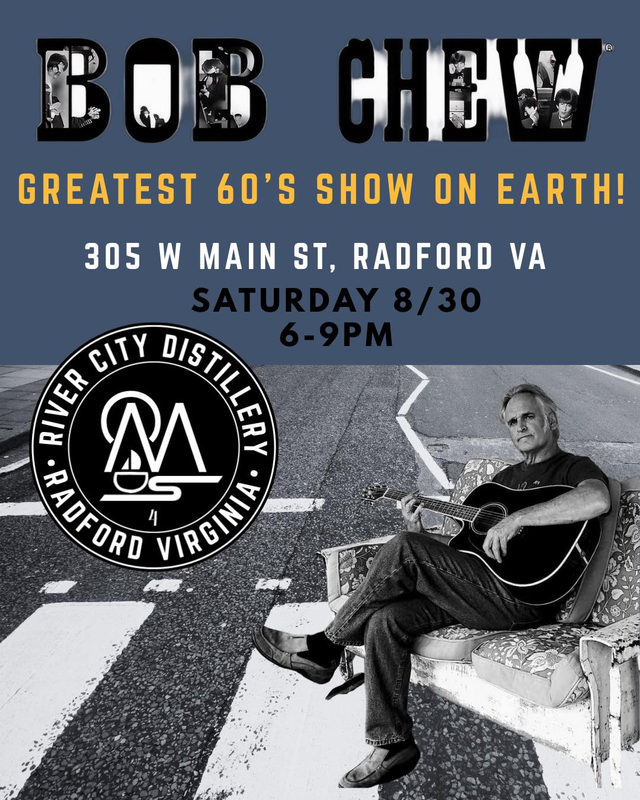 River City Distillery presents Bob Chew in concert on Saturday, December 20, 2025.